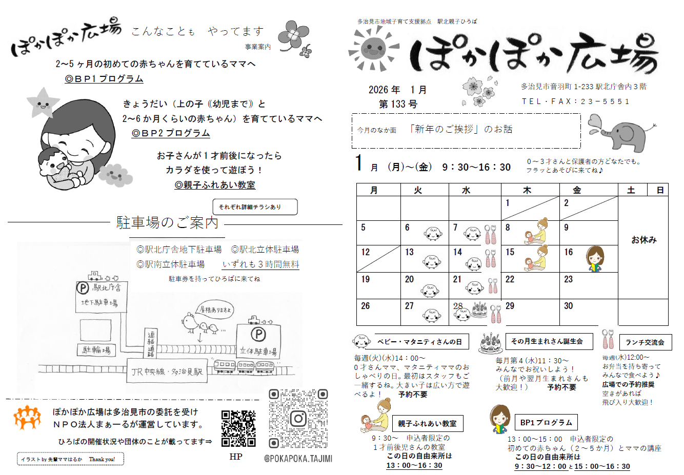 ●1/08・15・・13:00~16:30(親子ふれあい教室開催日)
